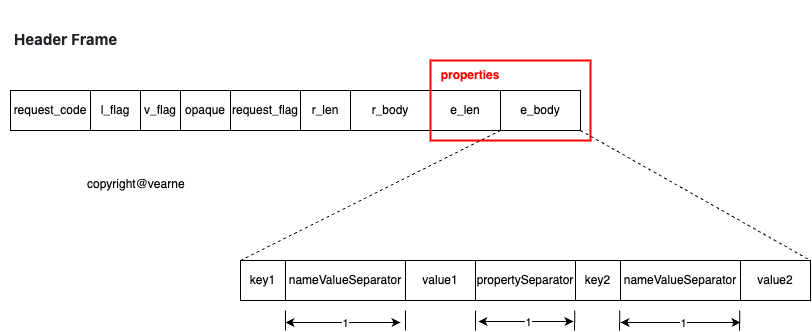RocketMQ中的许多关键属性,以及用户自定义的属性都通过此部分传递给消费者。